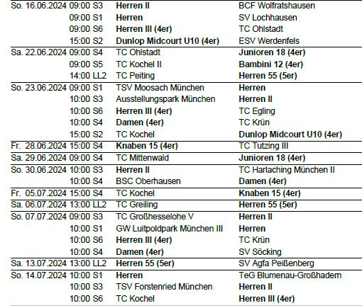 Hier die Spieltermine für die Sommersaison 2024: